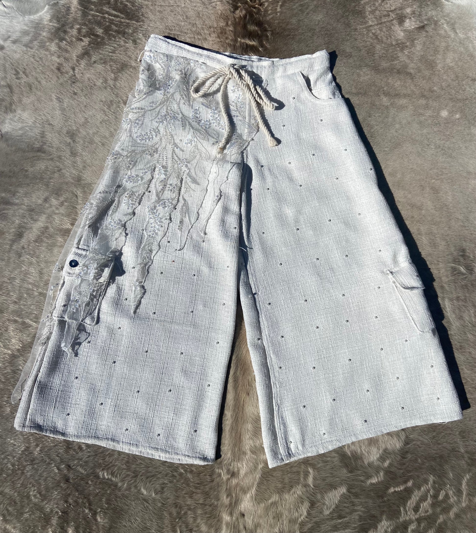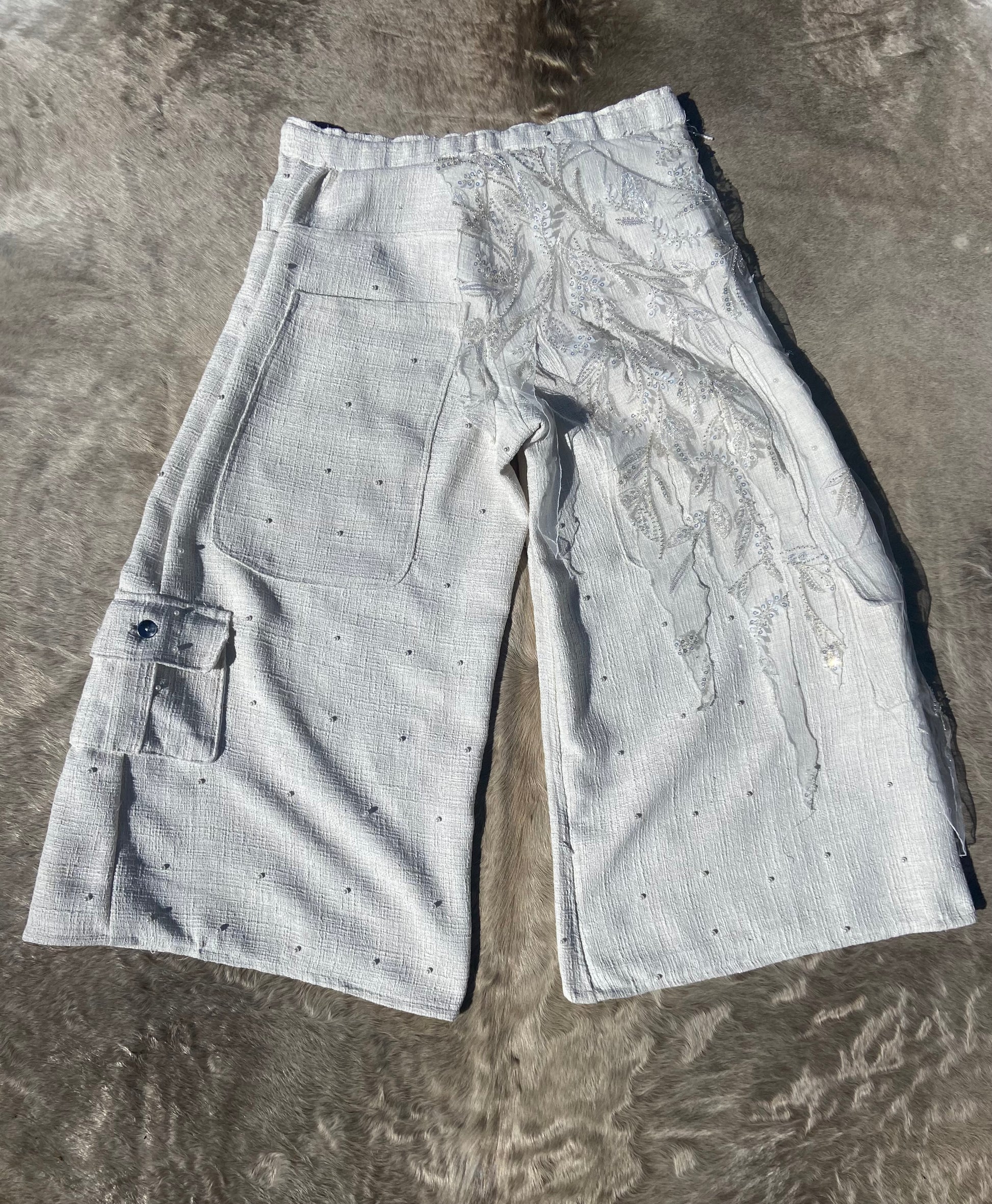 Made from tweed and mesh fabric and utilizing a rope drawstring. While creating the tattered mesh fabric Hektor drew inspiration from the sash’s titans wore called marks in a game called destiny that he used to play and unhealthy amount of in growing up.