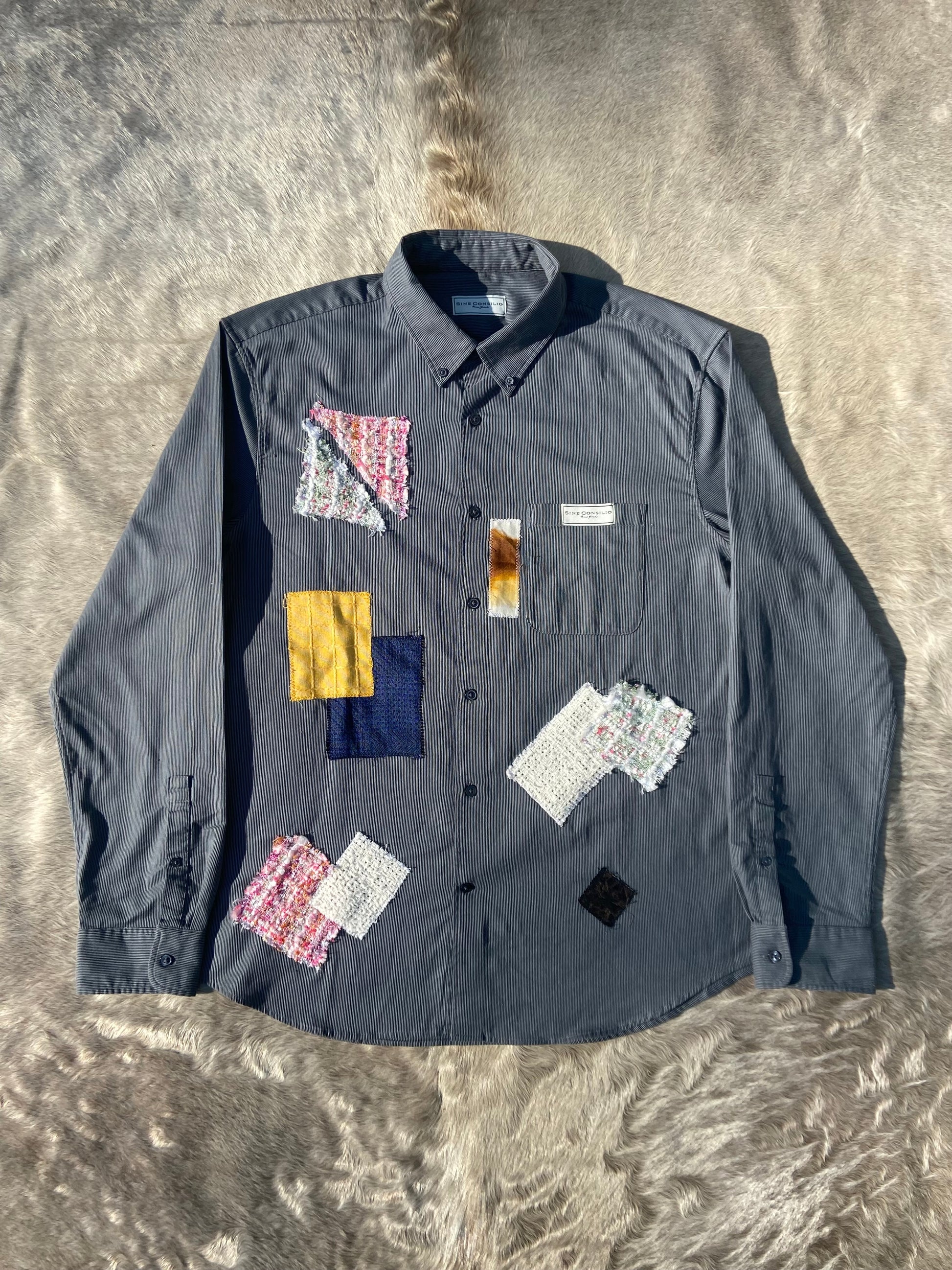 In Monaco, Hektor sat on a balcony overlooking the Grand Prix, the sea glittering beyond the noise. His friend Pepe joined him, both sipping espresso as cars blurred past below. Between laughs, they started talking about fashion instead of battles. Pepe suggested Hektor make a patchwork button-up shirt, mixing fabrics and colors. Hektor smiled, instantly drawn to the idea.